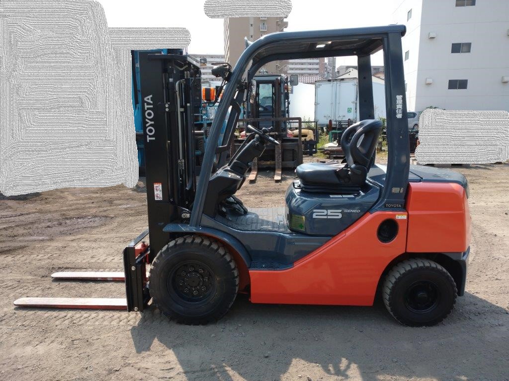 型式: 02-8FD25 製番:69633 2.5ton, ディーゼル 3m/2段フルフリーマスト オートマティック サイドシフト・前後エアタイヤ 2018年5月製 アワー:2782時間 |