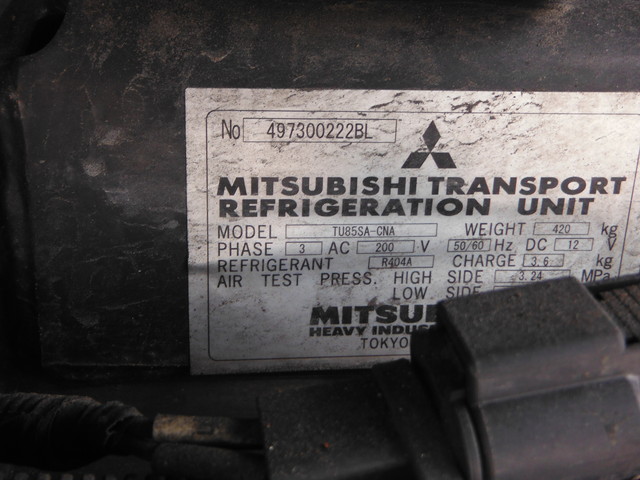 床:アルミ / ラッシング2段 冷凍機:三菱(型式:TU85SA・30℃〜-30℃設定・35℃→10℃ 1時間・スタンバイ(コード無)・1室・サブE/G式)