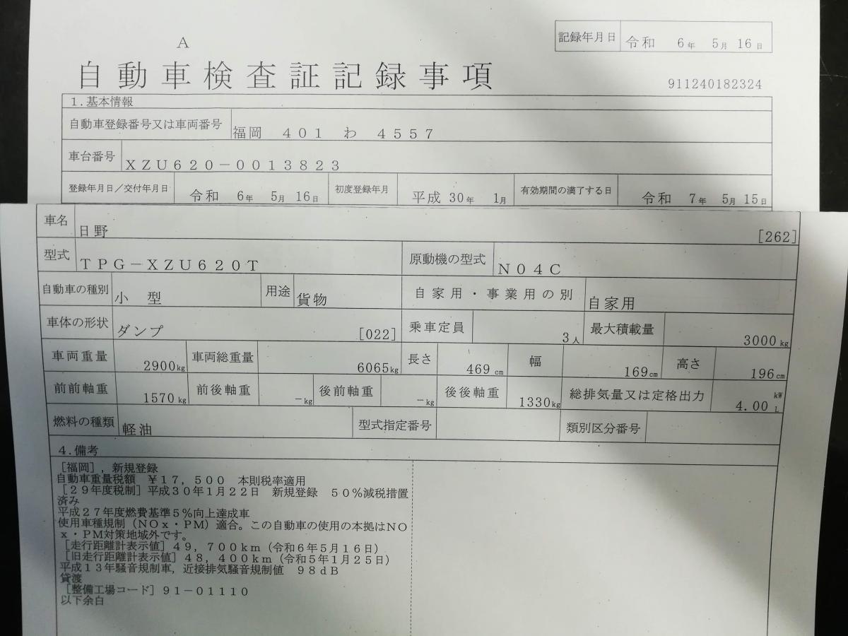 | メーカー | 日野 | 年 式 | H30/1 | ||||||||||||