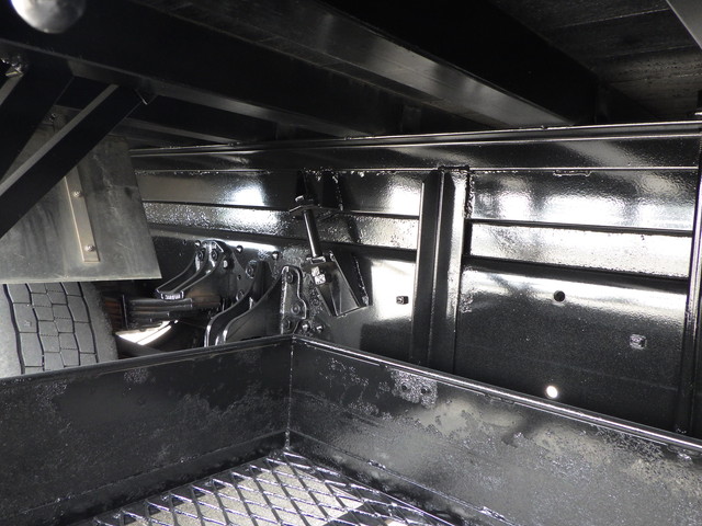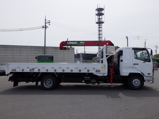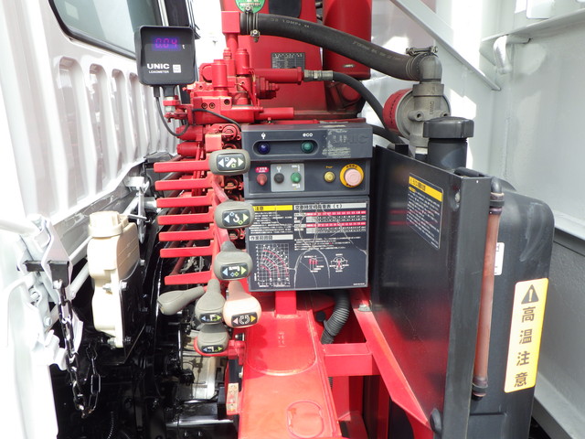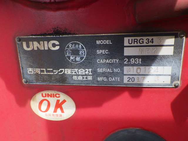 床:鉄板 / スタンション 4個 / アルミブロック 3段クレーン(古河ユニック・重量:2930kg・年式:2017年製・型式:URG343) / ラジコン / フックイン