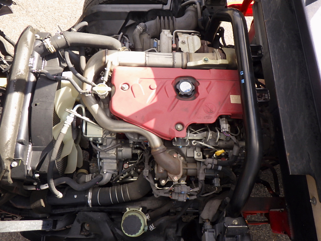 ★床鉄板加工/あおり欄干加工/ステンロープ通し穴3対/床埋込フック3対 ★フレーム赤塗装/メッキパーツ/横滑防止装置/左パワーミラー ★左右天井コンソール/純正ラジオ(AUX)/車両総重量4985kg |