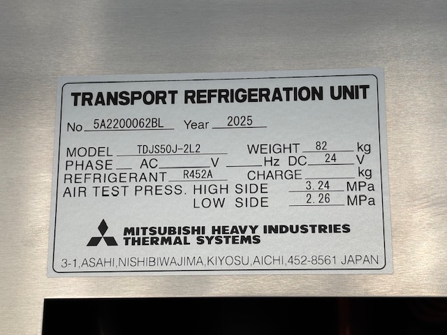 菱重 TDJS50J-2L2 -30℃設定 3時間で-17.2℃確認済(11月測定) スタンバイ付 床形状:アルミキーストン S/D付(幅1310mm×高2140mm) ラッシング2段
