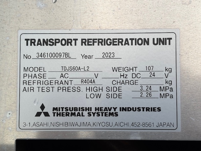 菱重 TDJS60A-L2 -30℃設定 3時間で-20.7℃確認済(12月測定) 床形状:アルミアンチスリップ ラッシング2段
