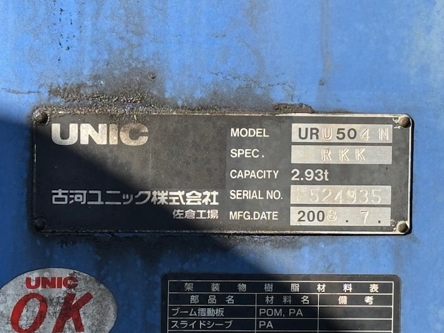 ユニック URU504N 4段ラジコン フックイン付 2.9t 床フック13対