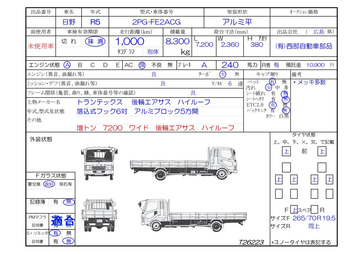 | メーカー | 日野 | 年 式 | R5/9 | ||||||||||||
