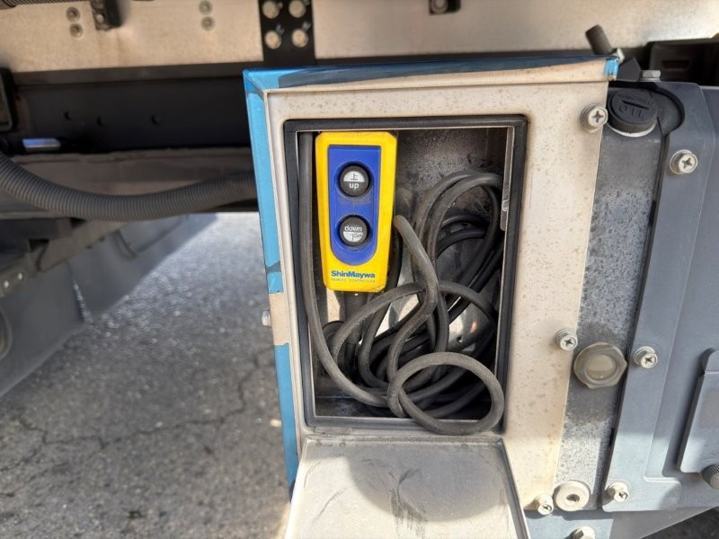 リヤ観音ドア ラッシング2段 床アルミ縞板張り 冷凍機:東プレXV42HOC-U ー5℃設定 ー5℃確認(外気16℃/3H) リヤアルミ格納ゲート1000kg(新明和)