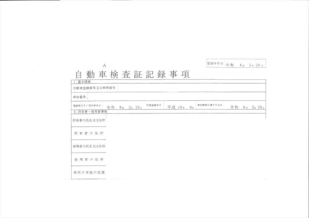 | 車 検 | R8/5/29 | 走行距離 | 315千km | ||||||||||||