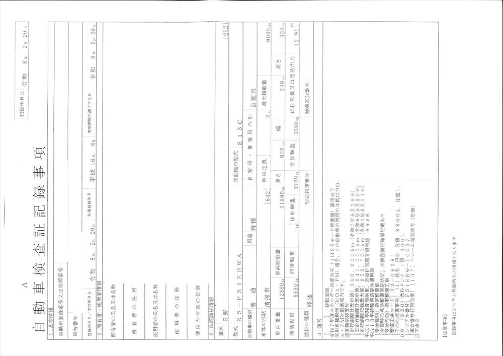 | 型 式 | KS-FS1ERWA | 車台番号 | FS1**** | ||||||||||||