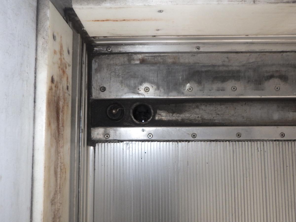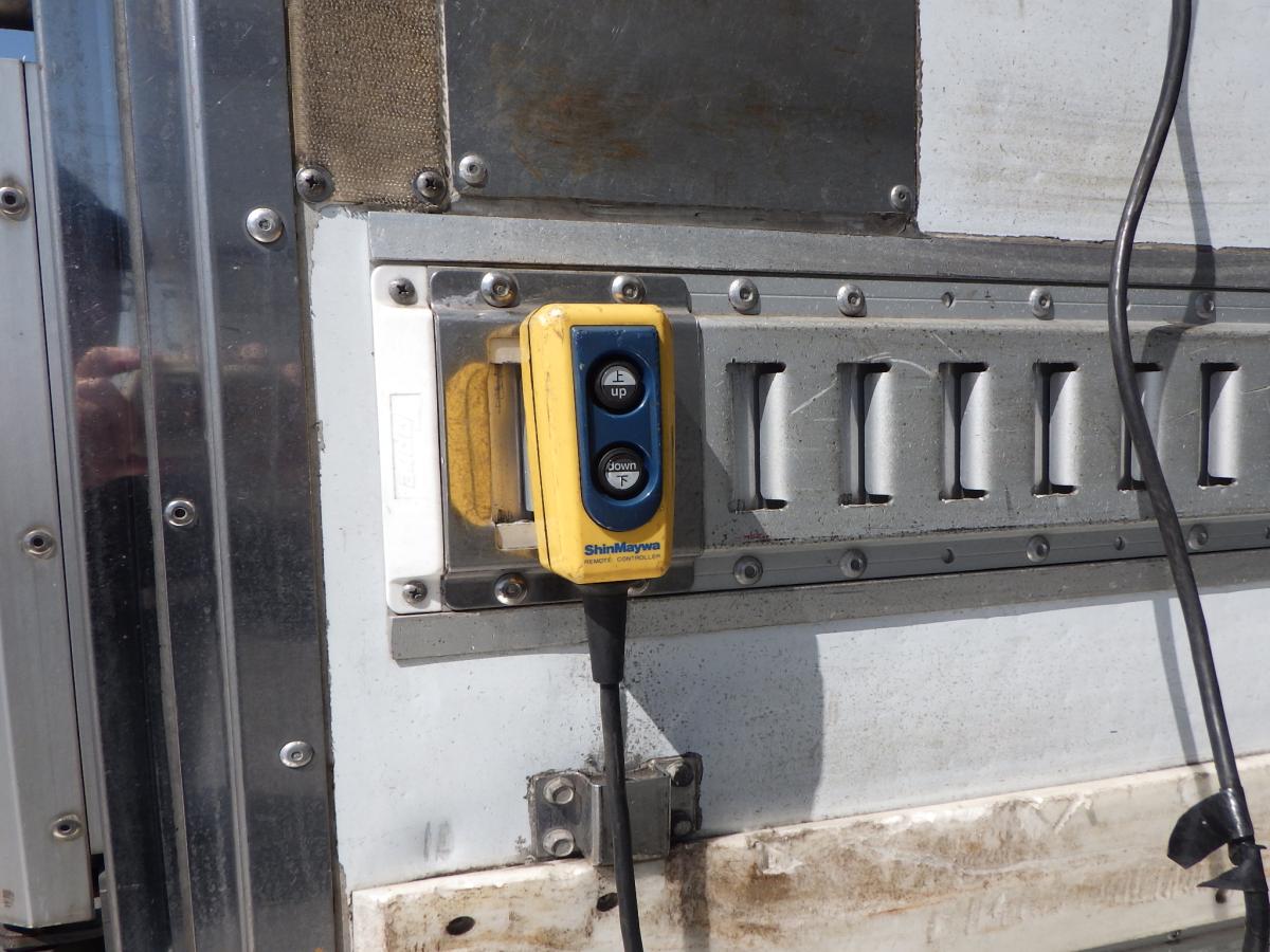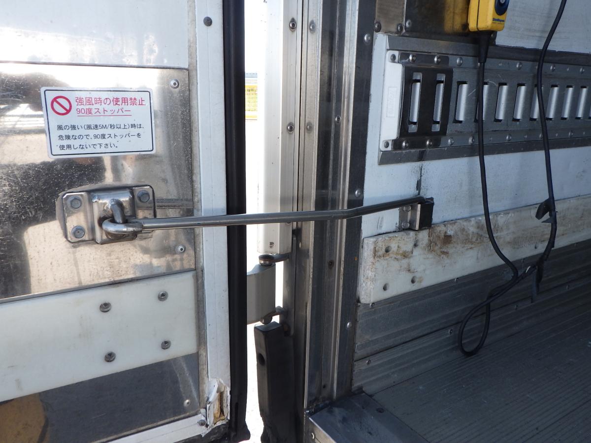 ラッシングレール3段 床アルミ 水抜き穴前部2 90度ストッパー 門口ステンレス 新明和格納ゲート 昇降能力1,000kg 冷凍機:東プレ(XV42H0C-T)-5℃設定