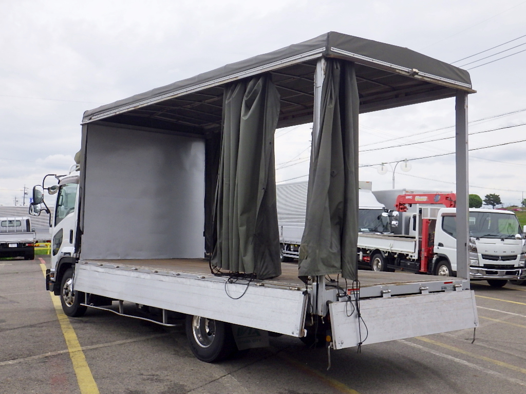 ☆平ボディー☆造りボディアルミブロック☆三面幌カーテン付/庫内灯☆530×標準幅☆17フォワード☆床面木製デッキ☆左右あおり開閉補助装置☆プリクラッシュブレーキ☆車線逸脱警報☆坂道発進補助装置☆HIDヘッドライト☆アルミホイール☆ドライブレコーダー☆タコグラフ☆カラーバックモニター☆車両取説☆3700kg/3.7t/3.7トン/車輌総重量7990kg