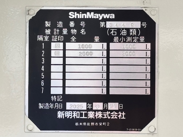 | 形状詳細 | タンクローリー | 積載量 | 2,790 kg | ||||||||||||