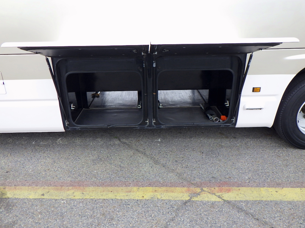 ☆自動折れドア/総輪エアサス/ニーリング ☆貫通トランク×2/モケットリクライニングシート ☆後席モニター/両側天井荷物棚/リアヒーター ☆換気扇/ナビTV/バックモニター/DVDプレーヤー ☆ETC/AT/車両総重量9450kg |