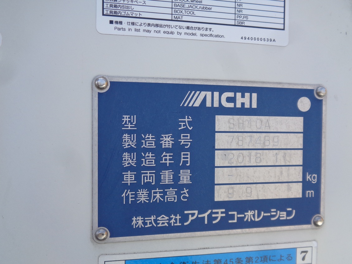 | 形状詳細 | 高所作業車 | 積載量 | 150 kg | ||||||||||||