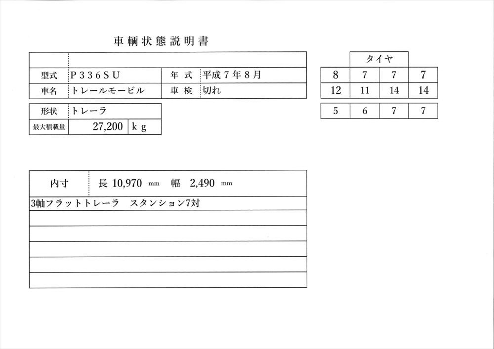 | 形状詳細 | トレーラー | 積載量 | 27,200 kg | ||||||||||||