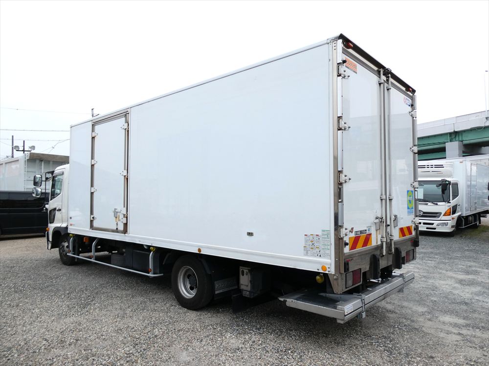 ボデー内寸 長6.21m ワイド2.26m 高2.1m 車検 令和8年5月 冷凍機:菱重 TDJS50A-L2 -30℃設定 上物箱:トランテックス V022F27-03 格納パワゲート新明和 床アルミしま板 積載2700s 210ps 6速ミッション |