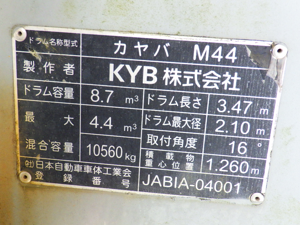 | 形状詳細 | ミキサー | 積載量 | 9,710 kg | ||||||||||||