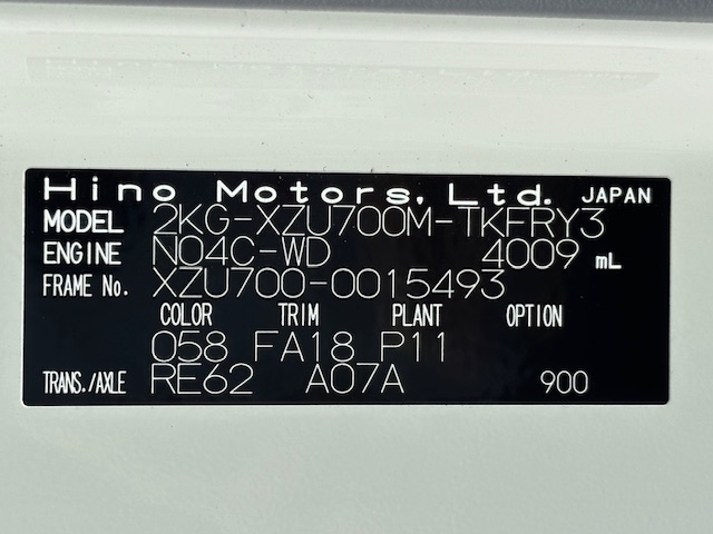 | 型 式 | 2KG-XZU700M | 車台番号 | XZU700-001**** | ||||||||||||