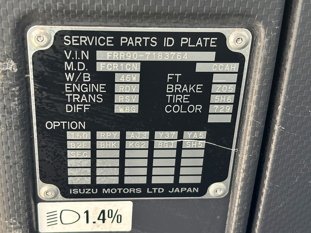 | 型 式 | 2PG-FRR90S1 | 車台番号 | FRR90-718**** | ||||||||||||