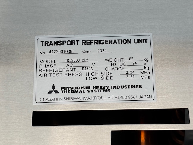 菱重 TDJS50J-2L2 -30℃設定 3時間で-10.4℃確認済(8月測定) スタンバイ付 格納P/G付 床形状:アルミアンチスリップ S/D付(幅1300mm×高2170mm) ラッシング2段