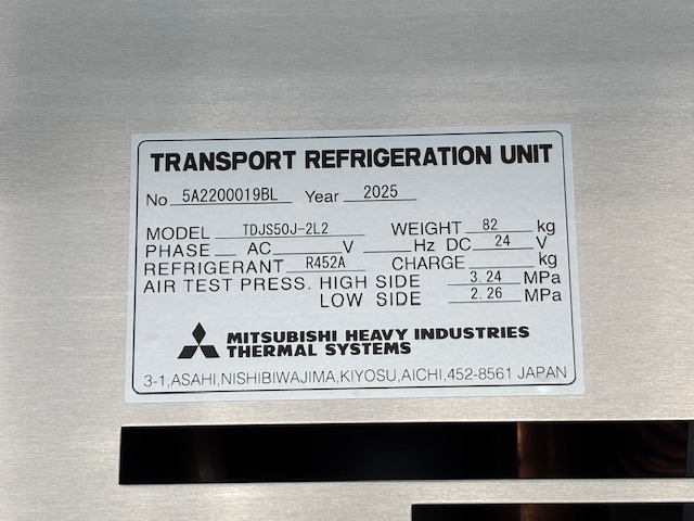 菱重 TDJS50J-2L2 -30℃設定 3時間で-7.1℃確認済(8月測定) スタンバイ付 床形状:アルミキーストン S/D付(幅1300mm×高2140mm) ラッシング2段