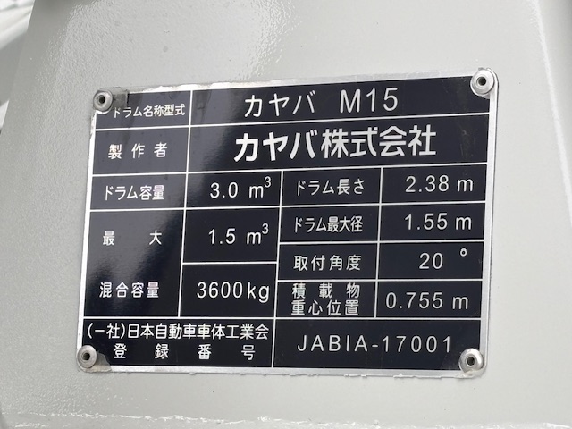 | 形状詳細 | ミキサー | 積載量 | 3,500 kg | ||||||||||||