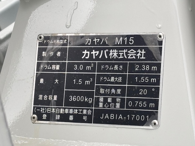 | 形状詳細 | ミキサー | 積載量 | 3,470 kg | ||||||||||||
