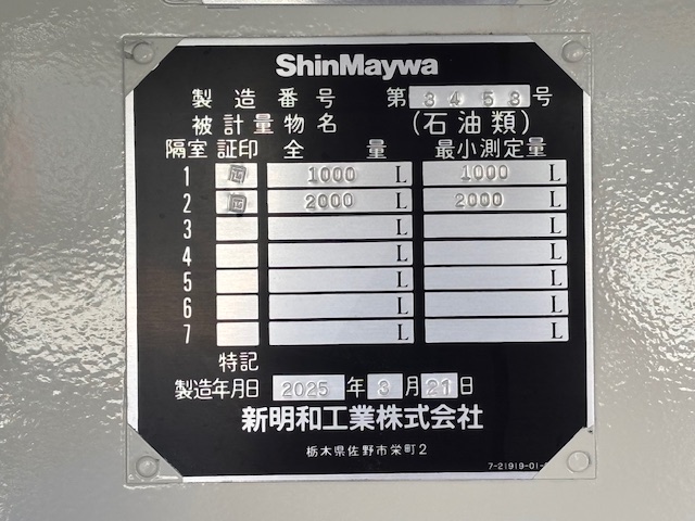 | 形状詳細 | タンクローリー | 積載量 | 2,790 kg | ||||||||||||