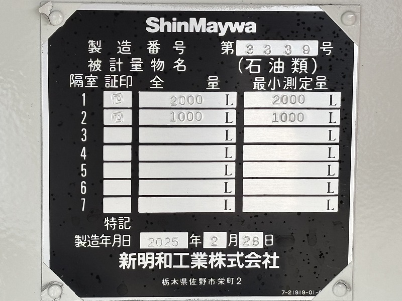 | 形状詳細 | タンクローリー | 積載量 | 2,790 kg | ||||||||||||