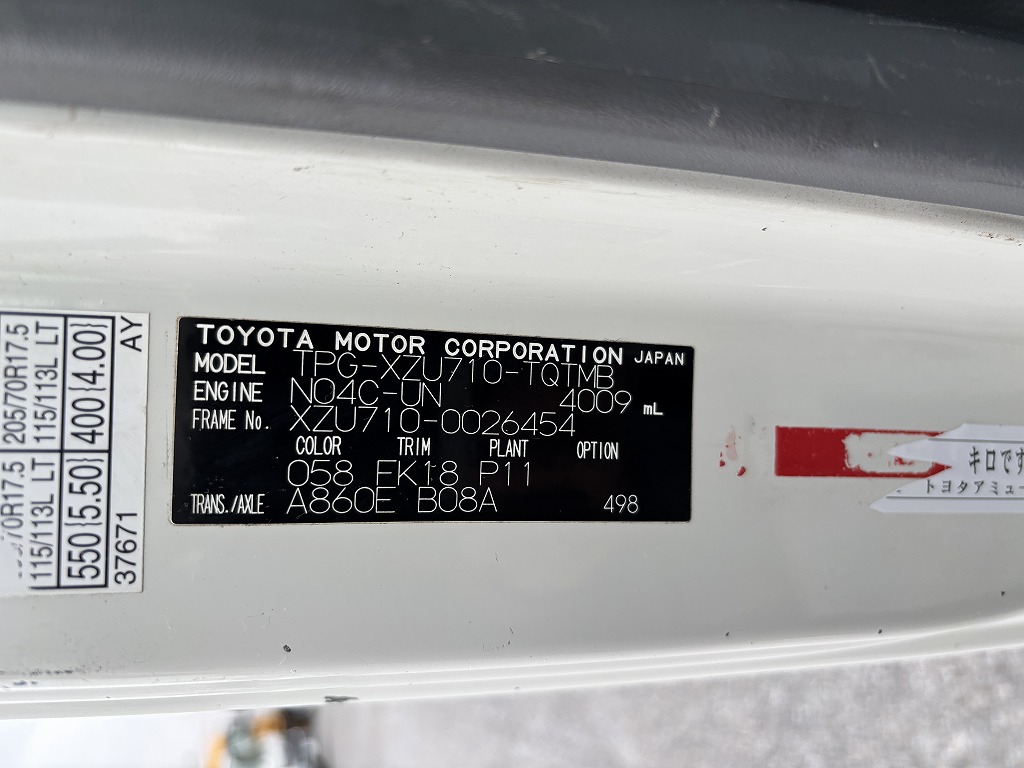 | 型 式 | TPG-XZU710 | 車台番号 | XZU710-002**** | ||||||||||||