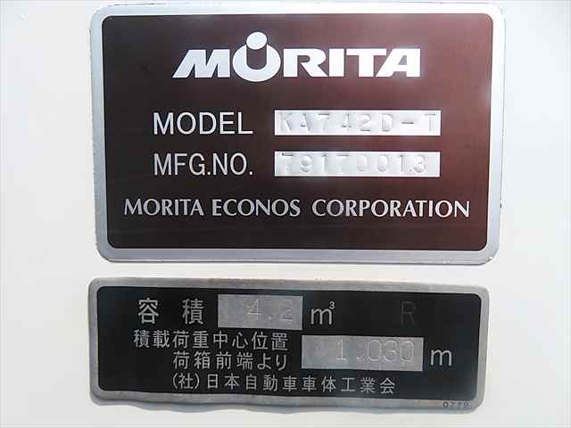 | 形状詳細 | 塵芥車 | 積載量 | 2,000 kg | ||||||||||||