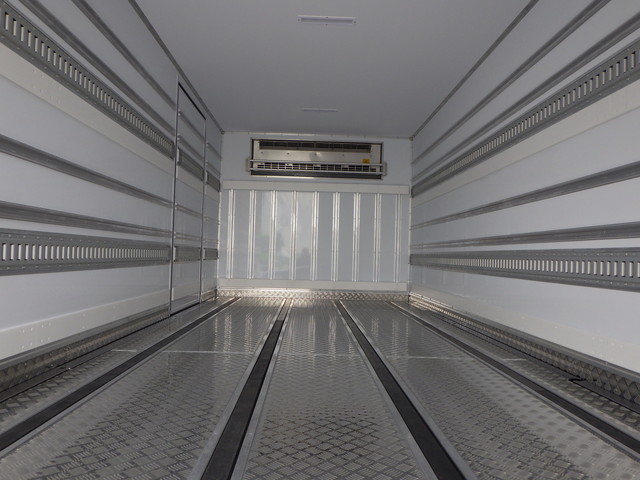 床:アルミ縞板 / ジョルダー ミゾ4列 / ラッシング 2段 冷凍機:東プレ(型式:XV82LSC・スタンバイ(コード有)・1室・直結式) / 格納式パワーゲート(新明和 L:155cm W:230cm 荷重:1000kg・型式:RAK10-6495D・ラジコン・箱内リモコン)