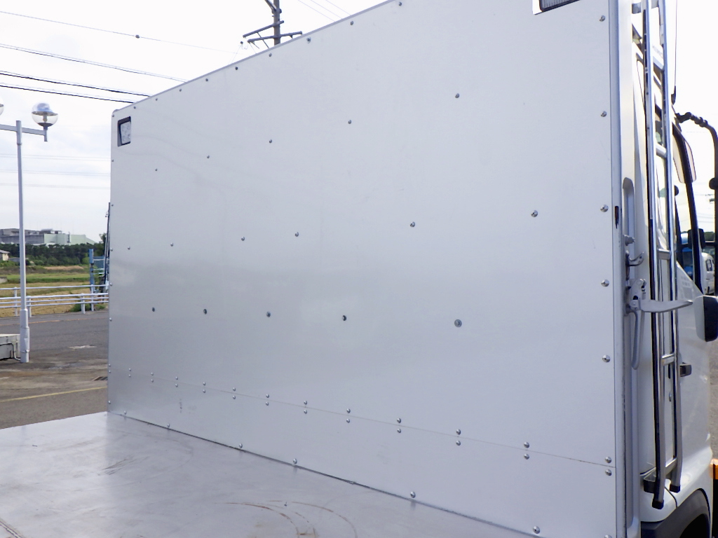 ★トランテックス製/床ステン張り/エアロルーフラック ★キャビン左右ダラー付/着脱式リアアオリ支柱/LEDサイドマーカー4対 ★LEDヘッド&フォグ/左右アオリバランサー/衝突被害軽減ブレーキ ★TRC&横滑防止装置/デンソーETC/クラリオンBモニター ★左右天井コンソール/LEDルームランプ/車両総重量7980kg |