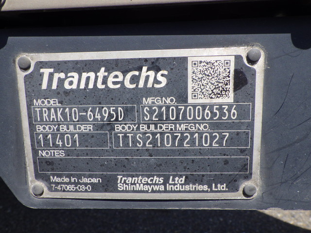 格納式パワーゲート(トランテックス・型式:TRAK10-6495D)・床:キーストン / ジョルダー ミゾ4列 / ラッシング 2段 冷凍機:三菱(30℃〜-30℃設定・25℃→5℃ 1時間・1室・直結式)