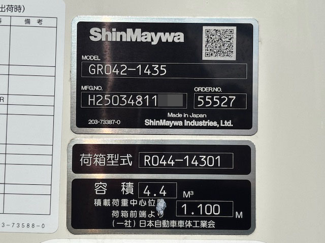 | 形状詳細 | 塵芥車 | 積載量 | 2,000 kg | ||||||||||||