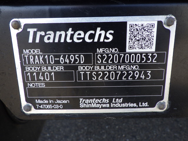 床:アルミ縞板 / ラッシング 2段 冷凍機:三菱(30℃〜-30℃設定・15℃→-6℃ 1時間・1室・直結式) / 格納式パワーゲート(トランテックス L:155cm W:220cm 荷重:1000kg・型式:TRAK10-6495D・ラジコン・箱内リモコン)