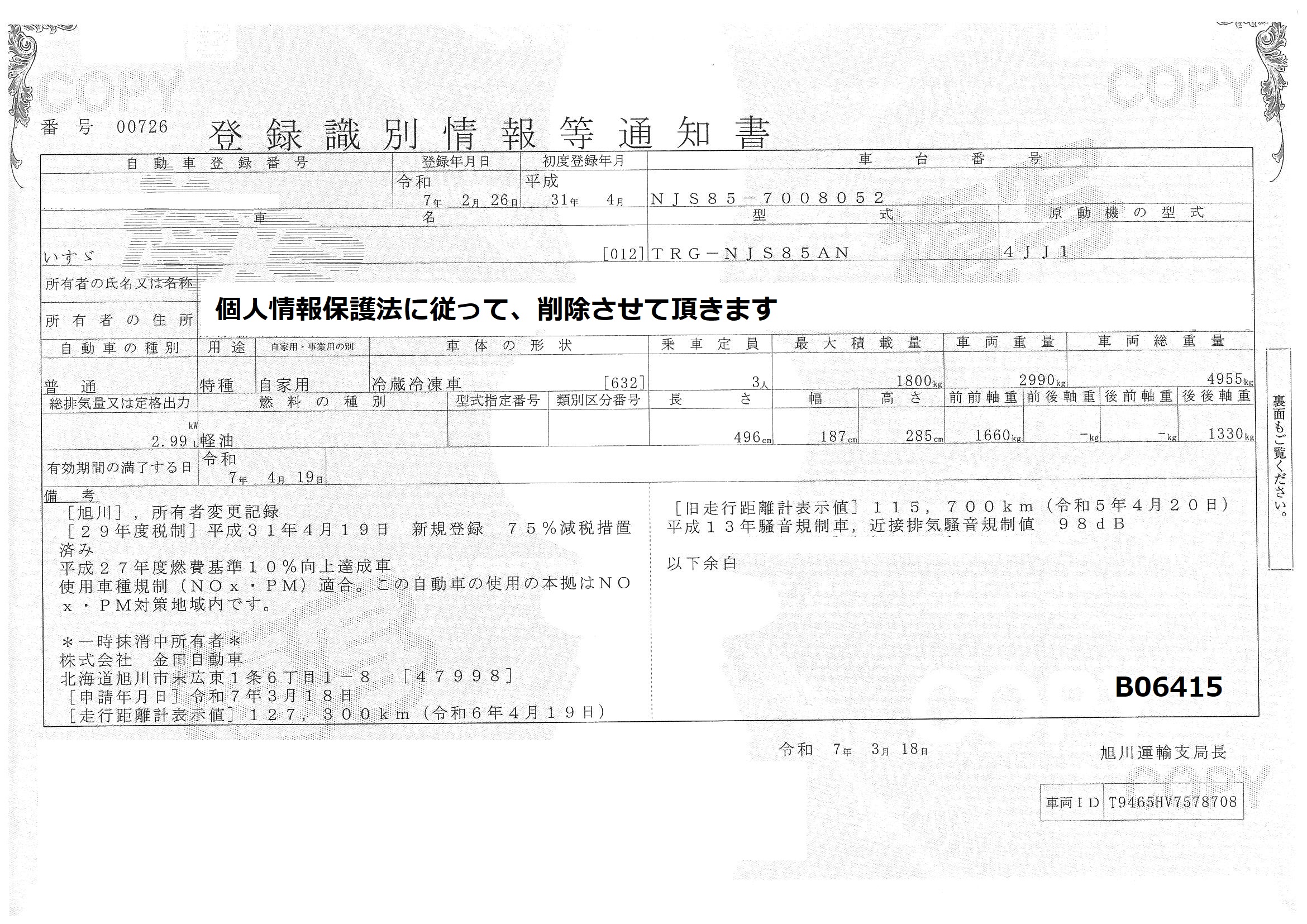 中古トラック検索 > 詳細情報