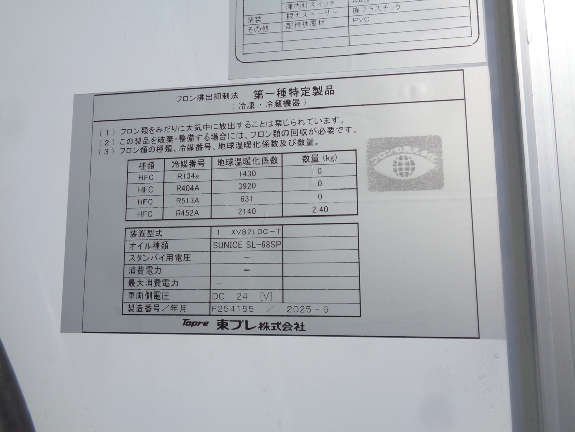 | 形状詳細 | 冷凍車 | 積載量 | 2,400 kg | ||||||||||||