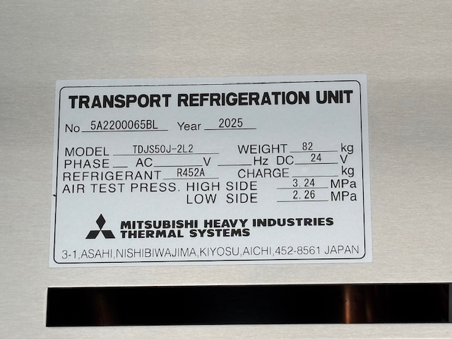 菱重 TDJS50J-2L2 -30℃設定 3時間で-19.7℃確認済(11月測定) スタンバイ付 格納P/G付 床形状:アルミキーストン ラッシング2段