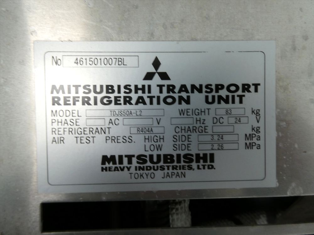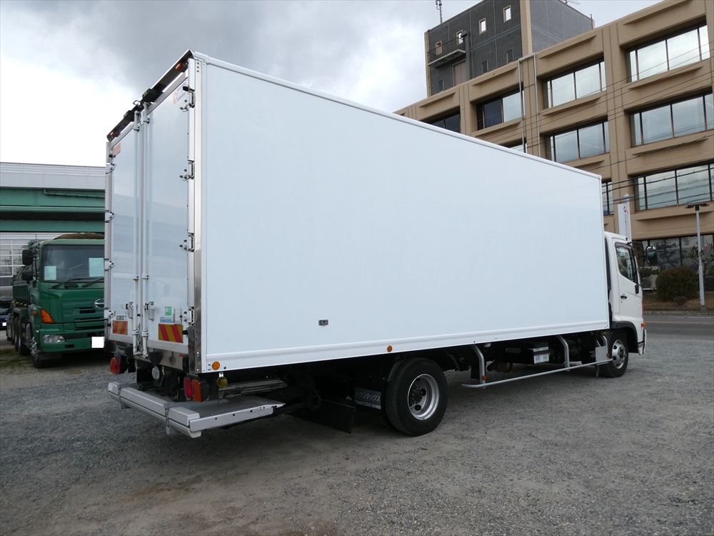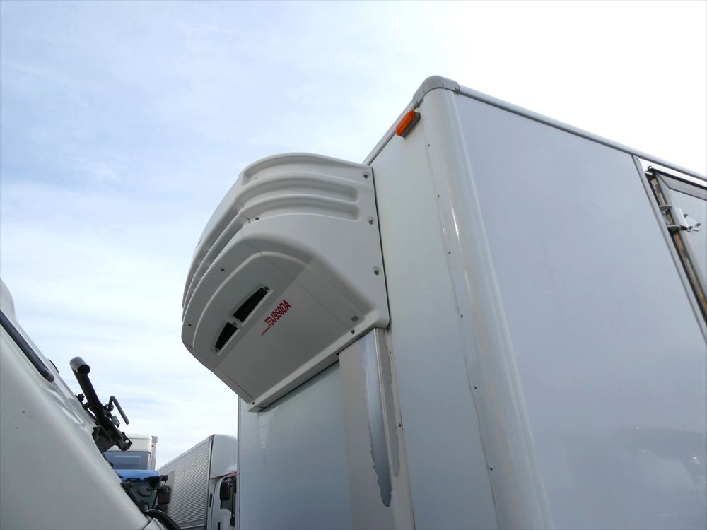 型式 TKG-FC9JKAA 車台番号 FC9JKA-16427 ワイド ボデー内寸 L6.18m W2.26m H2.1m 格納パワゲート 新明和 冷凍機:菱重 TDJS50A-L2 上物箱:トランテックス 床アルミしま板 バックモニタ ETC |