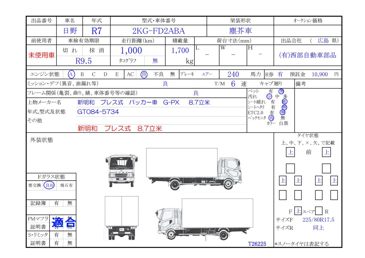 | メーカー | 日野 | 年 式 | R7/5 | ||||||||||||
