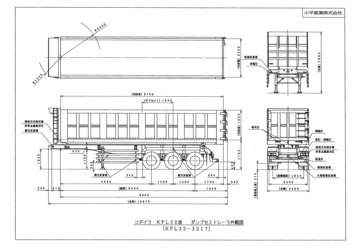 | 形状詳細 | トレーラー | 積載量 | 23,400 kg | ||||||||||||
