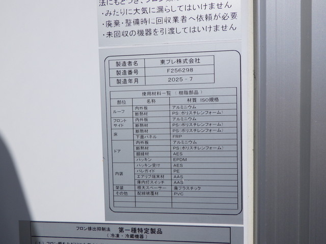 床:キーストン / ジョルダー ミゾ4列 / ラッシング 2段 冷凍機:東プレ(型式:XV82L0C・30℃〜-30℃設定・10℃→-12℃ 1時間・1室・直結式)/ 格納式パワーゲート(新明和 L:230cm W:155cm 荷重:1000kg・型式:RAK10-6495D)