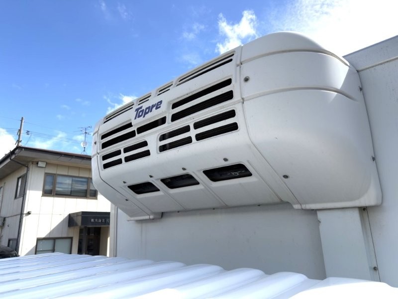 リヤ観音ドア ラッシング2段 床アルミ縞板張り 冷凍機:東プレXV42HOC-U ー5℃設定 ー5℃確認(外気16℃/3H) リヤアルミ格納ゲート1000kg(新明和)
